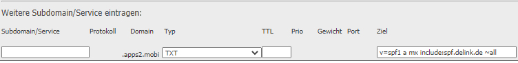 - Tragen Sie bei Weitere Subdomain/Service eintragen folgende Werte ein: