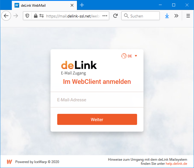 Für jeden E-Mail-Account bei naymspace systems ist Webmail - also die Bearbeitung von E-Mails ohne E-Mail-Client über einen Browser - inklusive. Webmail wird über den Link https://delink.email aufgerufen.